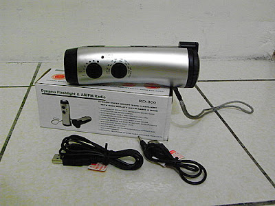 這手搖手電筒還有附兩條USB連接線,可以對筆記型電腦和手機充電